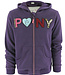 Applied letters: "PONY". On the leg of the P, fabric threads look like a horse's mane.