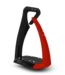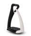 The outer branch of the stirrup is made of Elastollan®, a flexible material that deforms and allows the branch to open, facilitating foot release in case of a fall.