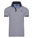 Jersey poloshirt with all over stripe print. Logo embroidery on wearers left chest. Flatknit collar with contrasting stripe. Sleeve ribbing with contrast stripe. Contrast color at underplacket with small embroidery. Closure with branded buttons