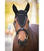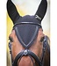 Long bonnet beautifully crocheted in a tight mesh and attached to the noseband with a small fastener located at the bottom. The browband area is wide enough for the bonnet to fit perfectly on the horse's head. The Lycra ears adapt to many ear sizes. A double row of rhinestones runs along the V shape, and the Pénélope logo, also in rhinestones, is placed on the left ear.This model is ideal for completing a chic and shiny look in competitions. It also protects the horse from insects or bad weather, promoting the horse's concentration.Composition:Dimensions: Distance between the ears ==> Tip of the V = 32cm - Minimum ear length: 19cm - Width at the top of the V: 18cmAvailable in black and navyWashing advice: Our long rhinestone bonnet can be machine washed on a delicate or wool program. It is advisable to put it in a laundry bag to protect it as much as possible and avoid damaging the rhinestones. To dry it, it is recommended to lay it flat and not to use a tumble dryer.