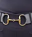 This belt features a beautifully designed metal snaffle bit that adds an elegant touch to any outfit